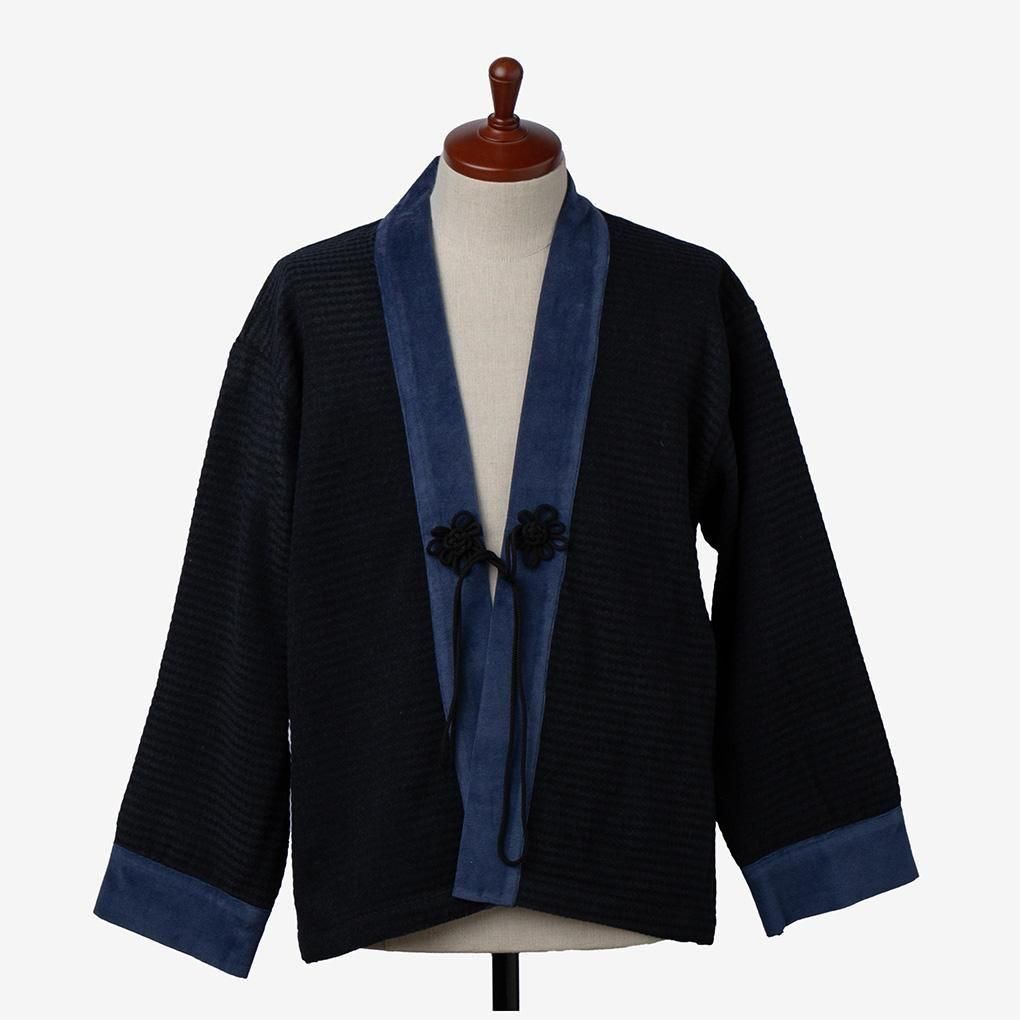 最高級の素材で日本の伝統的な半纏をベースに再構築されたカーディガン”Abie”