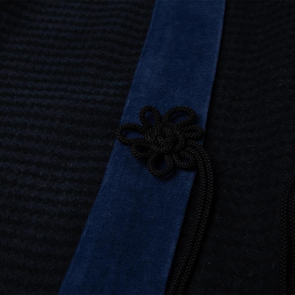 特徴的なフロントの留め具は「御所結び」という和服の正装に用いられる飾り紐で、シルク100%