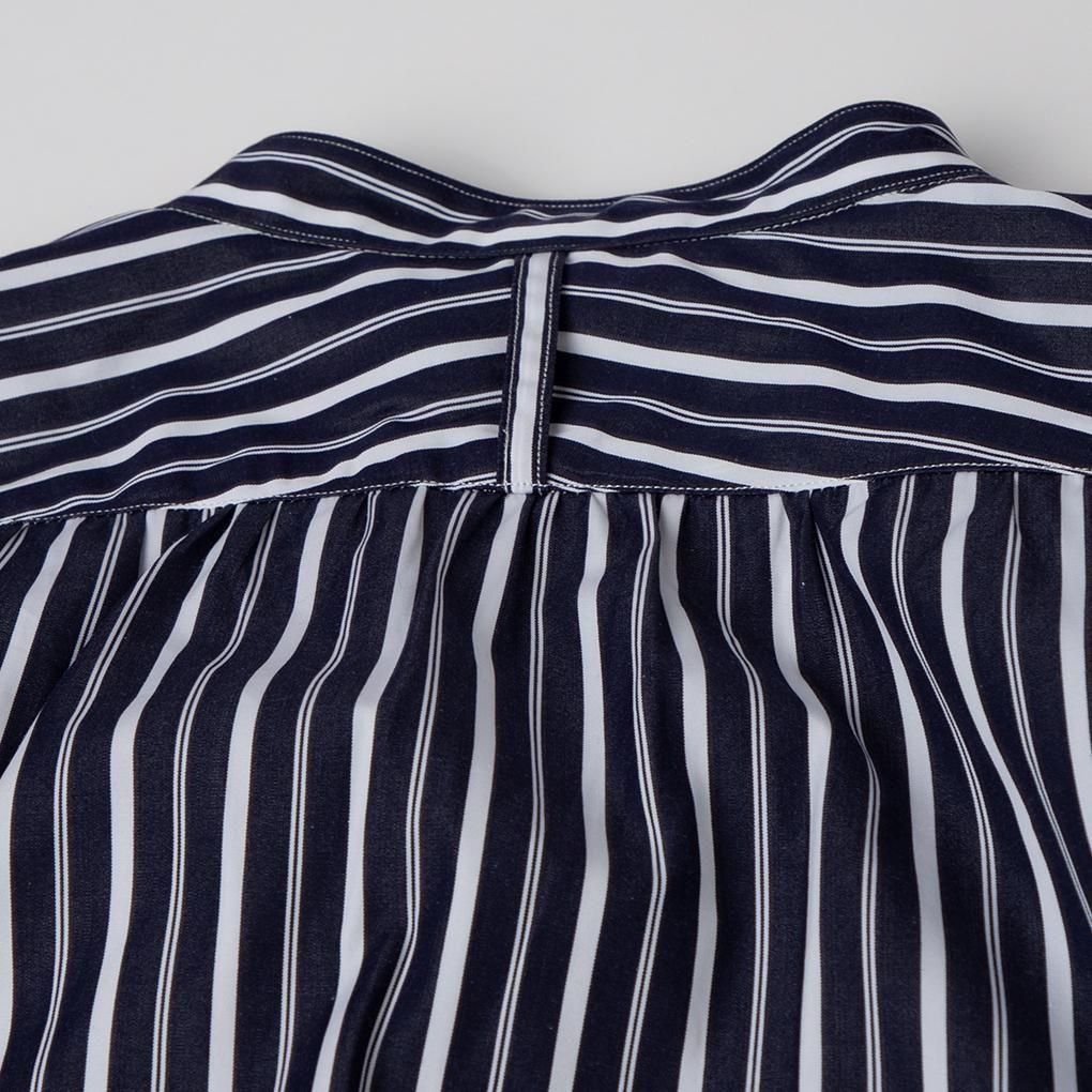 ヨーク下と袖口をギャザーにすることでドレープや袖の自然な丸みなど、洗練されたシルエットを作り出しています。