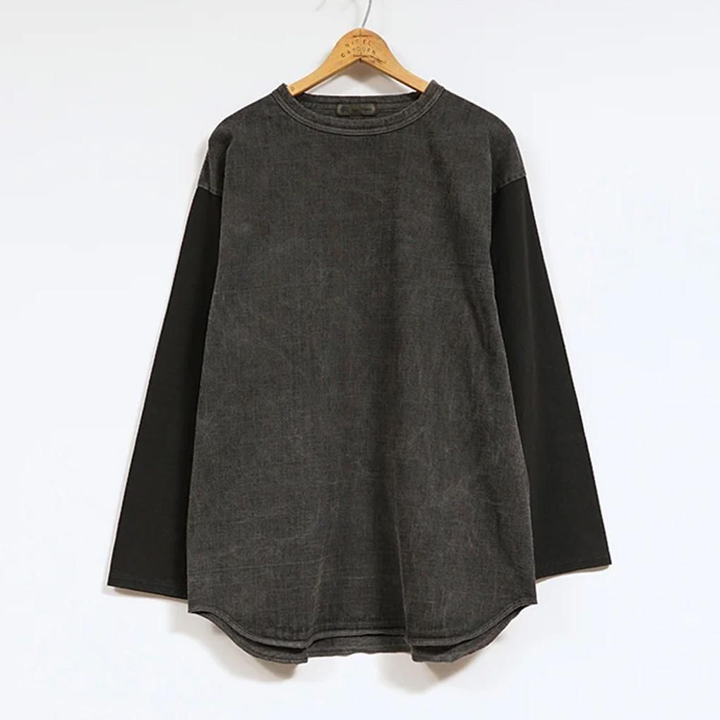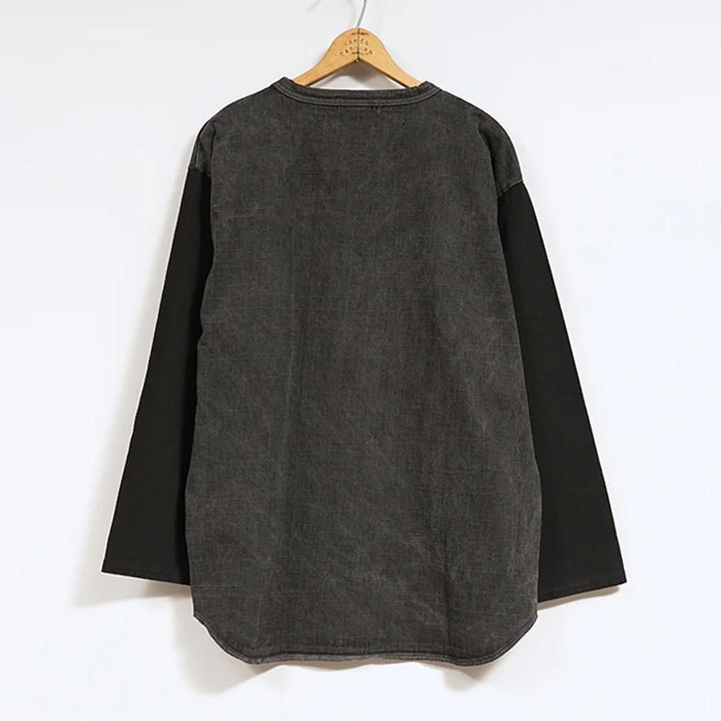 身頃のみピグメント加工のため、袖の切り替えがアクセントになっていて、一枚でも様になるアイテムです。