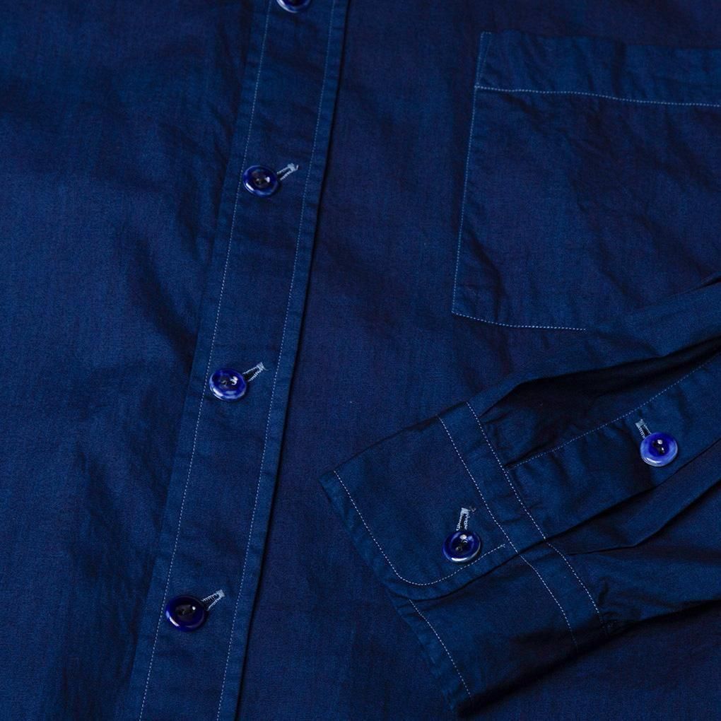 しなやかなコットン100%ブロード生地を使用し、丁寧にインディゴ製品染めをし奥深い色味を生み出しています。