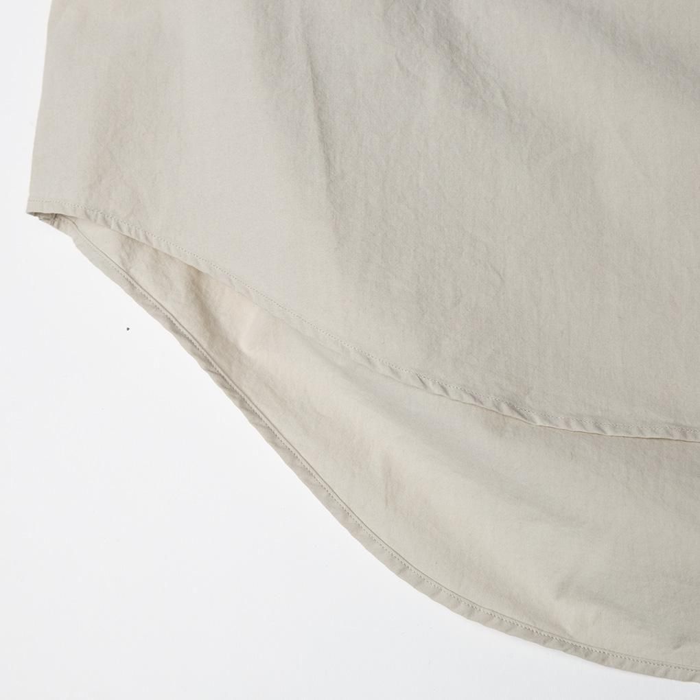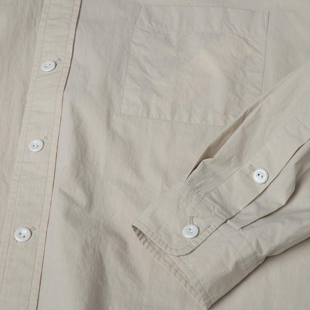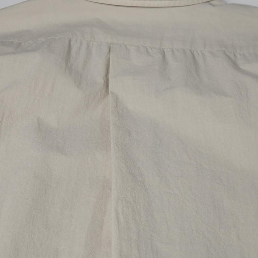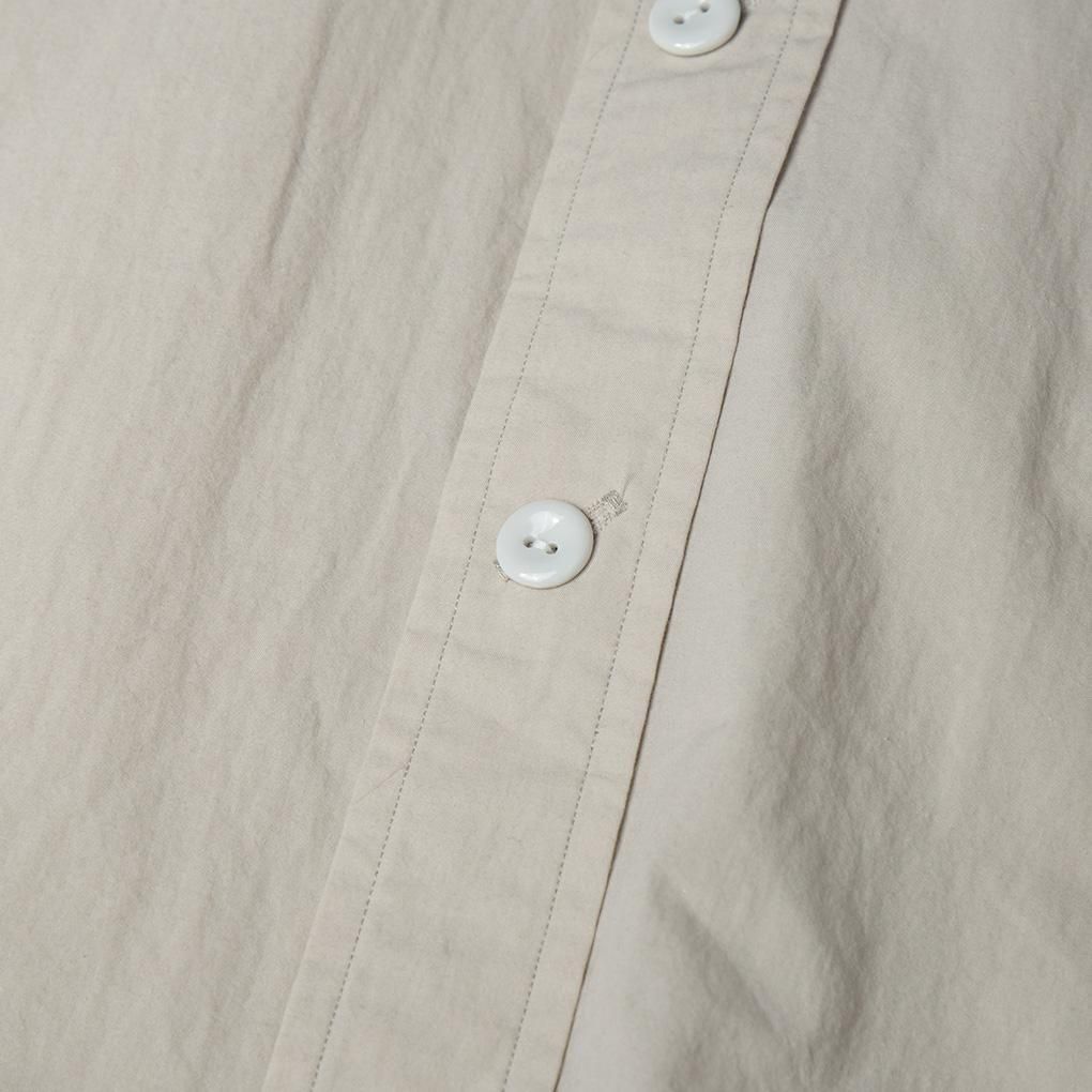 COTTON95%SILK5%のタイプライター生地を使用しておりハリのある生地感ながらシルクの優しい肌触り、そして高密度なので強度も備わっている。