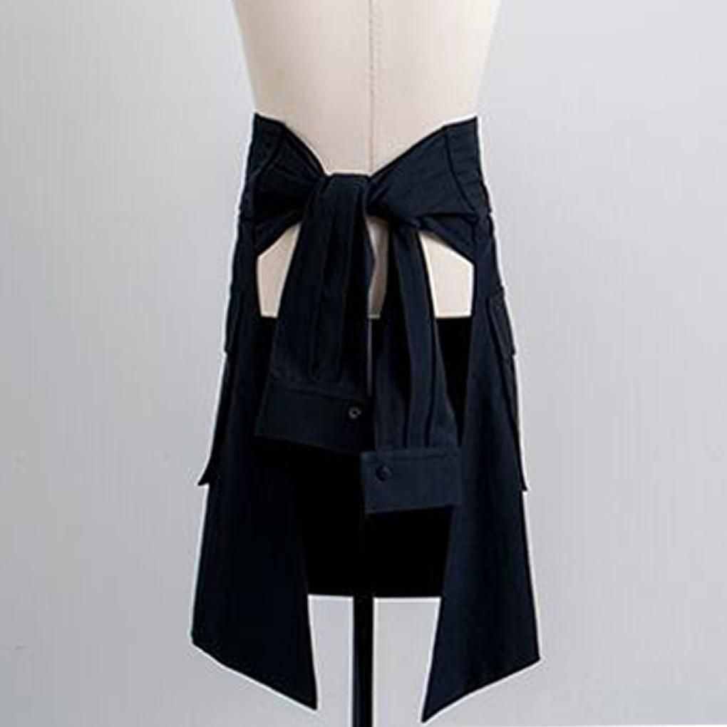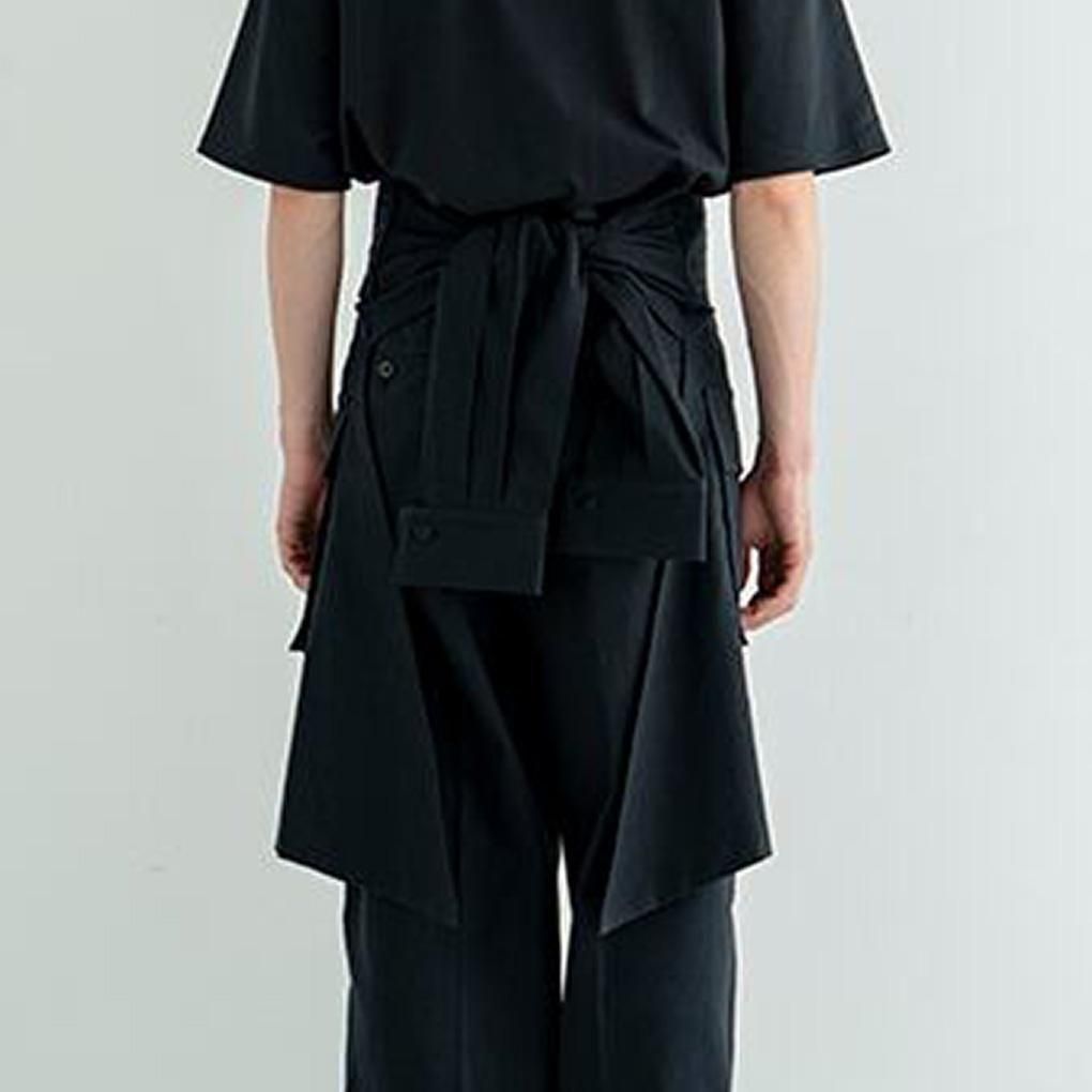 カマーバンドとシャツ袖を掛け合わせたようなデザインが特徴的なアイテム。