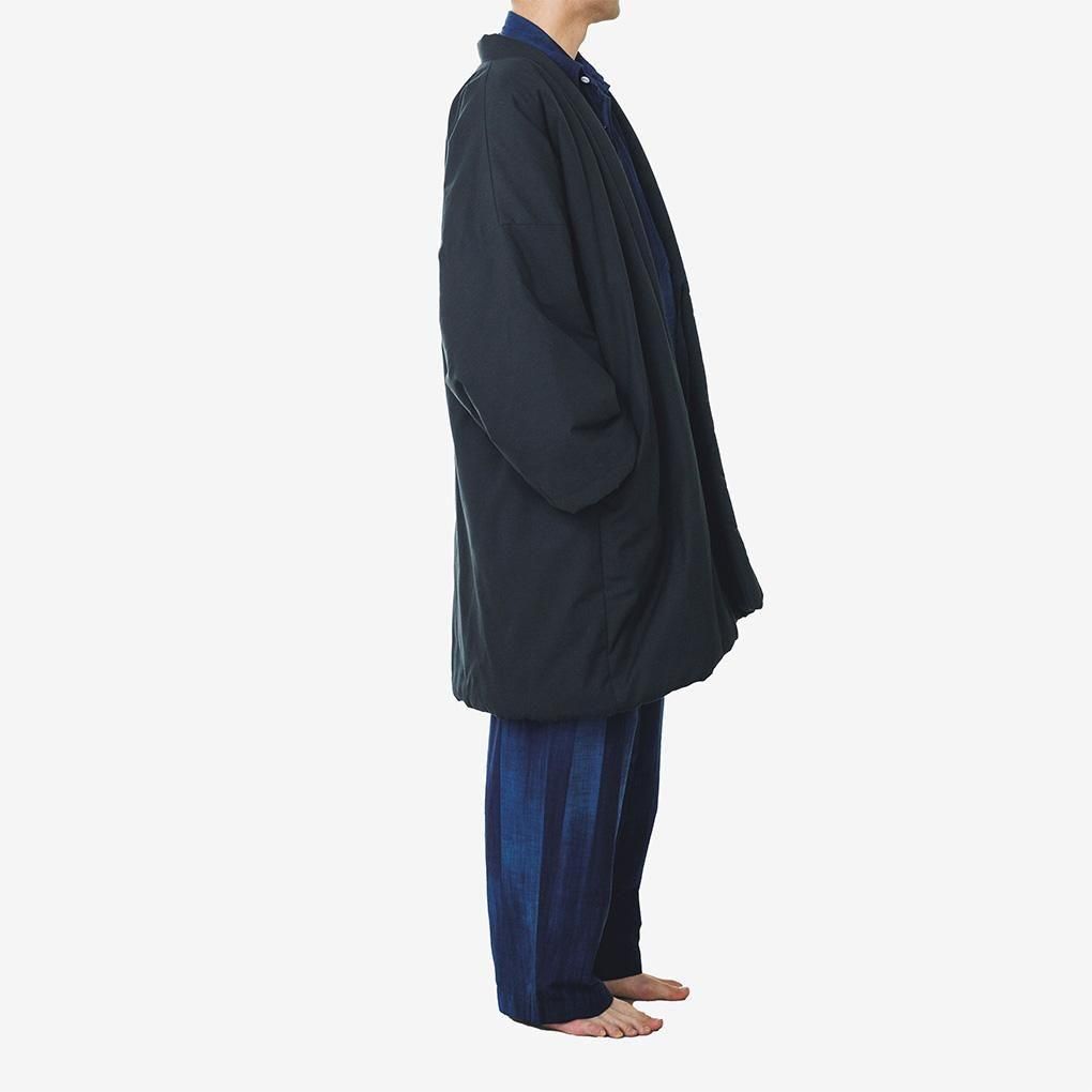 表地はネップ感のある筑後織のTSUMUGI、裏地には少し光沢のあるネイビーブラックのコットン地が採用された贅沢なリバーシブル仕様。