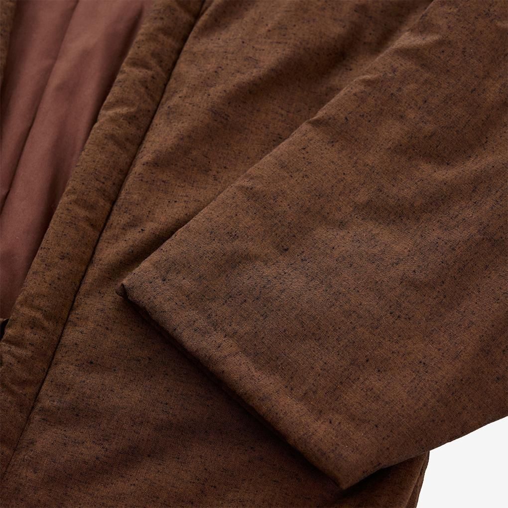 表地はネップ感のある筑後織のTSUMUGI、裏地には少し光沢のある赤茶色のコットン地が採用された贅沢なリバーシブル仕様。