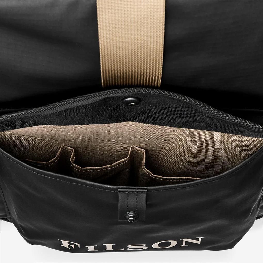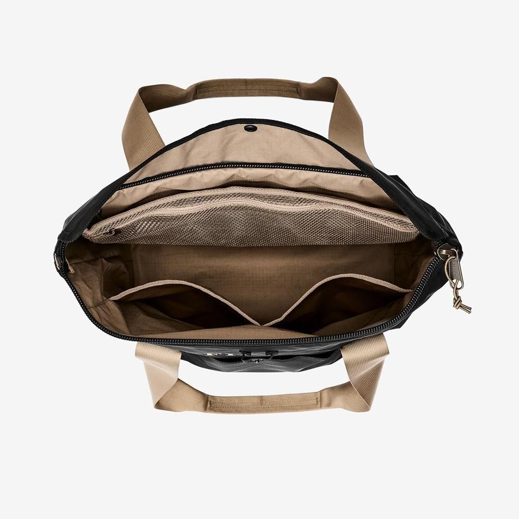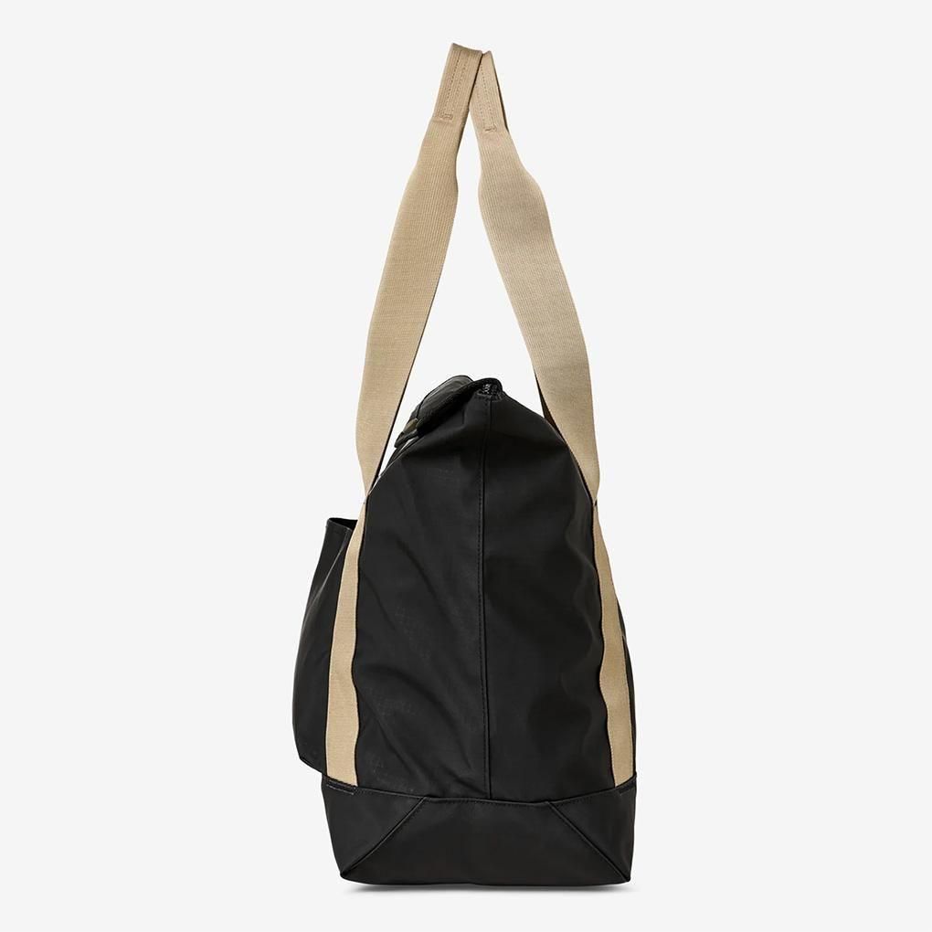 過酷な天候でもギアをドライに保つ多用途トート。メイン素材は300Dポリエステル・リップストップで、ボトムブーツは頑丈な600Dポリエステル・オックスフォードクロスです。これらの生地は完全リサイクル素材を使用し、熱可塑性ポリウレタン(TPU)加工を施して耐水性を最大限に高めています。