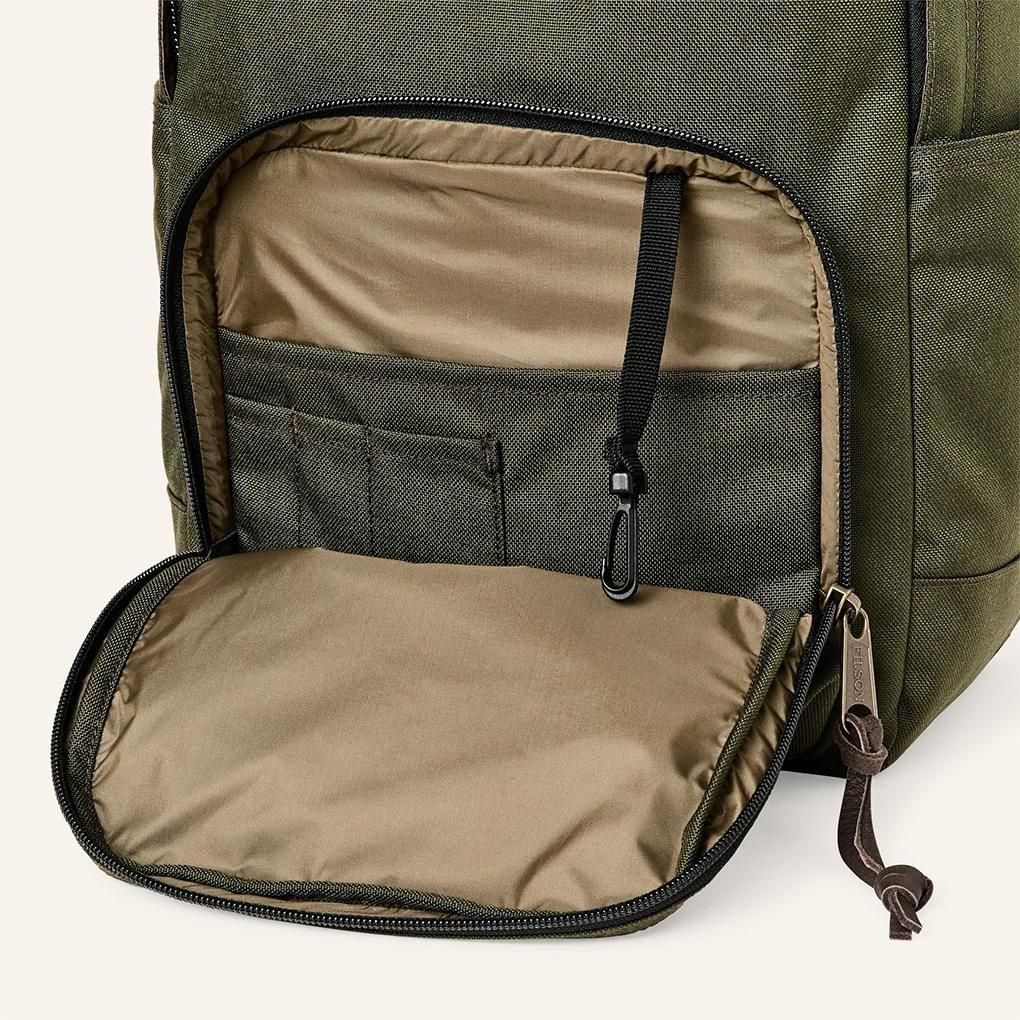 耐久性と汎用性にすぐれた、主要な航空会社の機内持ち込みサイズの要件を満たしているバックパック。 数多くの旅行や日常の使用のに耐えるように作られた多用途のこのバックパックは、耐久性と耐候性を備えた1000デニールのCordura®ナイロンで構成されています。 耐久性を高めるため、二重層で補強された底部とパッド入りのラップトップポケットを隠すジッパー式背面パネルが特徴です。 頑丈なコイルジッパーは引っ掛かりを防ぎます。 さまざまな持ち運びオプションのために、ブライドルレザーとナイロンウェビングで補強を加え仕上げました。