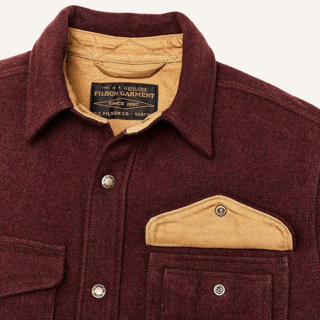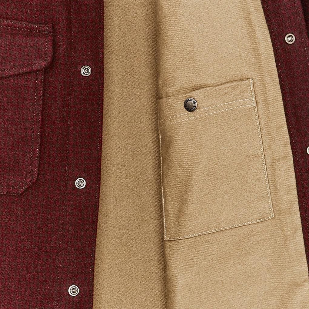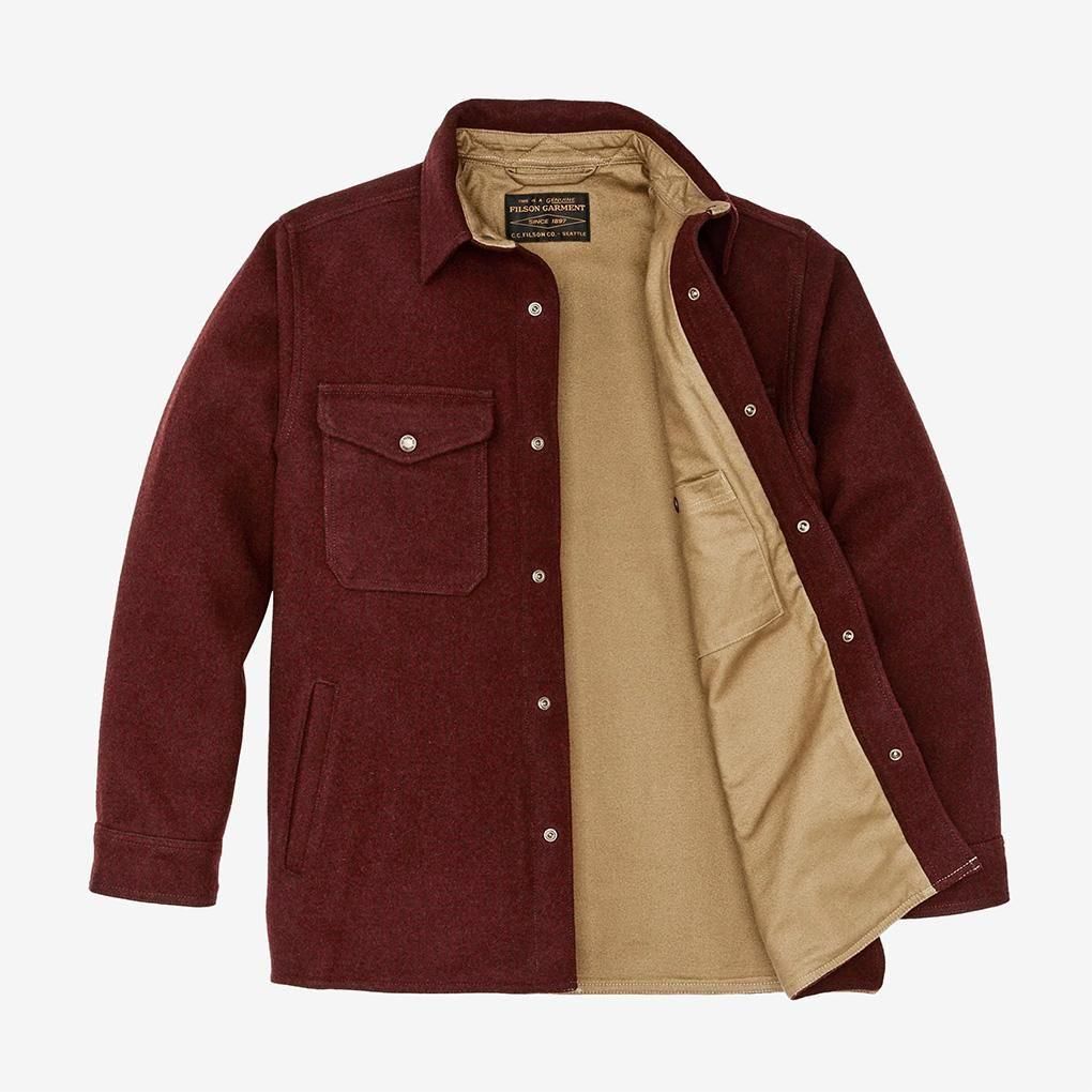フロントがスナップボタンで開閉する、暖かい総裏地のウール製ジャクシャツ。
