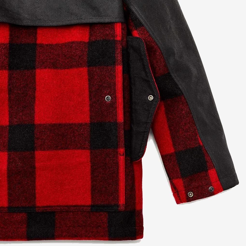 ダブル・コートはアイコニックなマッキノー・ウールを使用し、肩と腕にワックス加工を施したコットン・ティン・クロスを重ねて補強しています。 ダブルコートの基本は1914年に特許を取得したマッキノー・ウール・クルーザーで、太平洋岸北西部の林業家のために設計されました。 フルワイドのバックポケットはもともとティンバー・クルーザーのマップポケットとしてデザインされたもので、現在でもグローブやキャップなどかさばるアイテムの収納に適している。 しっかりと織られた24オンスのマッキノー・ウール・ツイルは耐久性、防風性、保温性に優れている。 フィルソンのティン・クロスは、1920年当時、伐採者や猟師のためのジャケットやパンツに使われていたワックス・キャンバスから進化したものです。 非常に目の詰まった織りと、耐久性と耐水性のための特殊加工により、ティン・クロスの耐久性と耐候性は、過酷な環境下で生計を立てる人々の間で伝説となっています。 英国で最も古く、最も優れた工場から調達されたブリキ布は、しばしば模倣されますが、長寿と耐候性において匹敵するものはありません。