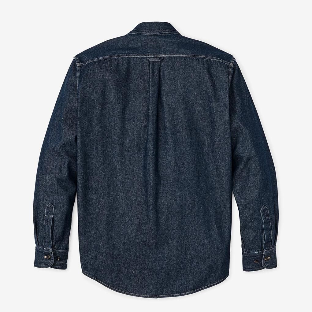 2x1デニムツイルを使用した丈夫なボタンフロントシャツ。