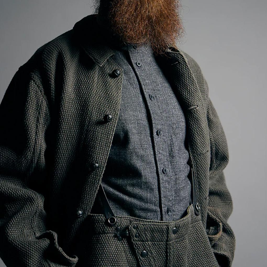 難燃性の衣料素材が開発されていなかった時代に、ファイヤーマンの機敏な行動に阻害がない事と燃えにくさを高めるために、極限まで密度を高める事が追及されうまれた刺子を現代に蘇らせたもの。